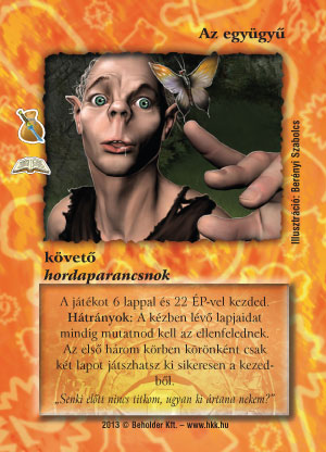 Zsoldoskatona (8): Ez bizony a megfelelő pakliban sokkal jobb, mint a Cyron, amit még használgatnak kalandozókhoz. Olcsóbb, több mindent tud, egyből húz. A hátrány, hogy nem-végzetúr kalandozókra működik csak, de az új követővel és jó pár, a közeljövőben kijövő lappal ez nem lesz túl nehéz. De ha csak saját magára sül ki, már az sem rossz.